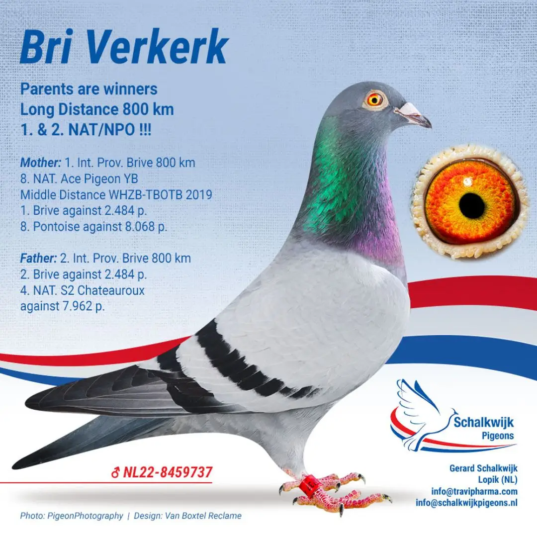 For fanciers around the world who dream of success in One Loft Races, this is the kind of pigeon that changes everything. Because “BriVerkerk” doesn’t just carry a pedigree — he carries proof. Proof that good breeding still matters. Proof that experience counts. And proof that Gerard Schalkwijk knows how to turn a vision into victory.